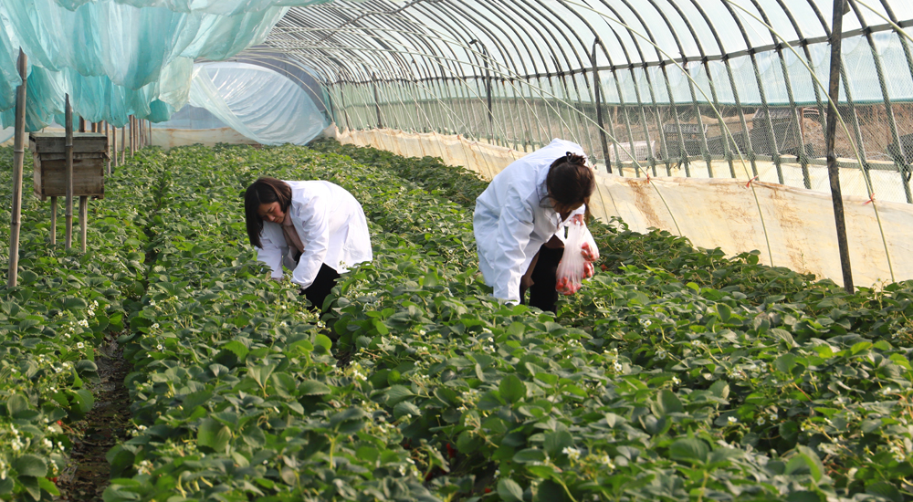 草莓檢測現場採樣。陳雪瑩 攝