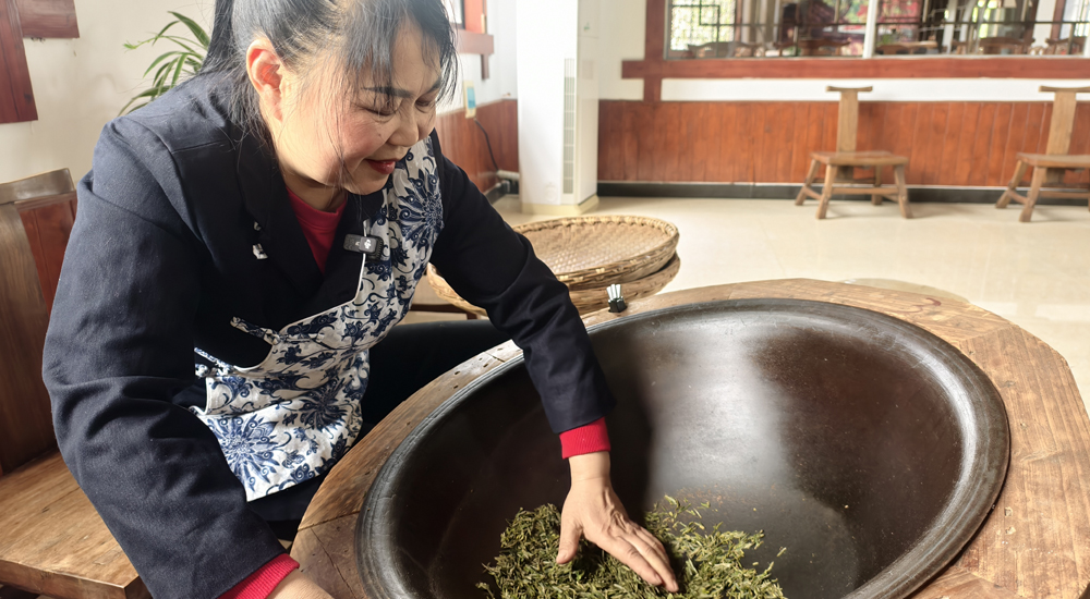 花鄉茶谷的制茶師傅正在炒茶。 王璐 攝