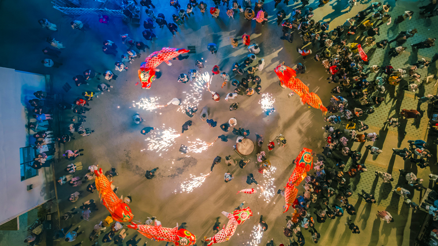 2025年3月22日,安徽省黄山市歙县北岸镇瞻淇古村落内,一场极具传统韵味的鱼灯巡游活动精彩上演。青石板古巷间,色彩斑斓的鱼灯穿梭游弋,满巷欢腾,吸引众多游客、摄影爱好者汇聚于此,共同感受非遗民俗的独特魅力。
