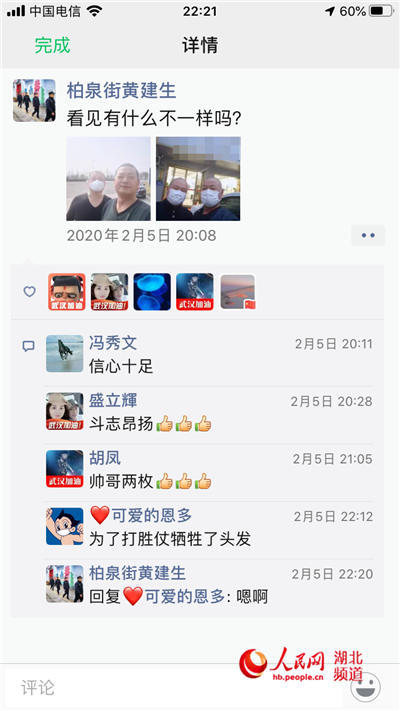 因为都成了光头,黄建生和冯秀文被城管所的同事们笑称是“光亮二人组”,也正是因为有了和他们一样依然执着地奋战在一线的人们,才让我们在疫情带来的黑暗中看到了亮光。(郭婷婷 艾康)